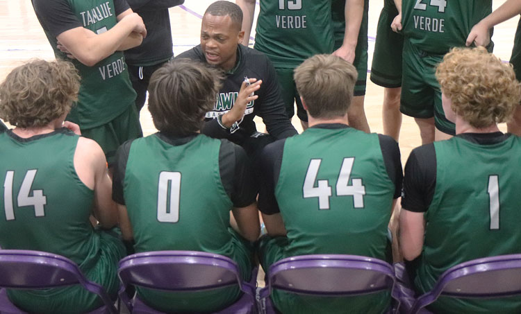 For Tanque Verde, Haggard scored a team-high 20 points on eight field goals (two 3-pointers) plus 2-5 free throws, senior Jacob Dickens 17 on six field goals (three 3-pointers) plus 2-3 free throws, senior Rich Knott 16 on four field goals (one 3-pointer) plus 7-12 free throws, and senior Philip Knott 10 on three field goals plus 4-6 free throws. Sophomore Ryan Johnson added seven points, Castillo three, and junior Alejandro Espinoza two.