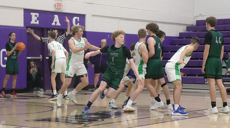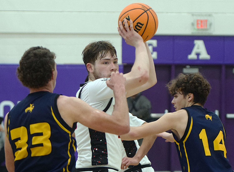 Senior Nick Yentsch and junior Dylan Broderick both netted 12 points, on six field goals plus 0-1 free throws and on six field goals plus 0-3 free throws, respectively. Senior Cole Yentsch added six points, junior Fernando Felix and freshman Trae Gaines four each, junior Grady Lackner three, and both senior Jace Jameson and junior Mason Hatch two each.