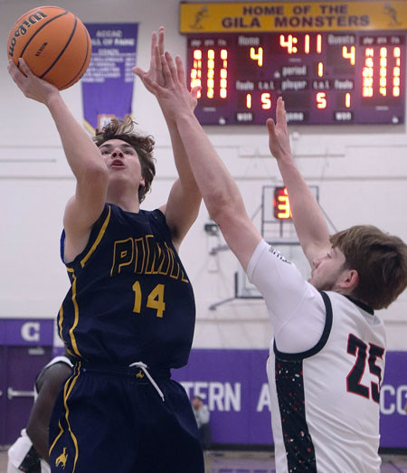 For Pima, four of five starters contributed double-digit scoring. Junior Keegan Corona had a team-high 17 points on seven field goals (one 3-pointer) plus 2-2 free throws, senior Preston Russell 13 on five field goals plus 3-4 free throws, junior Charlie Richardson 12 on six field goals, and Mattice 10 on five field goals. Senior Rhett Hughes added eight points and sophomore Tanner Smith two.