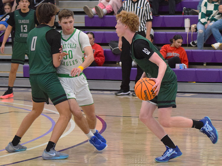 Tanque Verde led 23-21 following the first quarter and 36-34 at halftime, while Thatcher led 57-55 heading into the fourth quarter. Thatcher led by 10 points, 15-5, with 3:33 left in the first quarter, and Tanque Verde led by eight, 49-41, with 4:01 left in the third quarter.