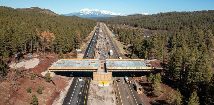 ADOT marks progress on I-17 wildlife overpass construction  Bridge deck in place as project south of Flagstaff begins winter shutdown