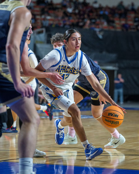 Posey then drove baseline for the Tigers’ lead, but Dosela answered with a spinning bucket that sparked an 18-0 Apache run, spanning two quarters. Dosela’s and-1 drive and Titla’s deep three gave Fort Thomas a 15-9 edge after one.