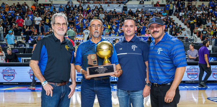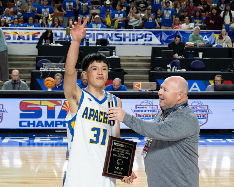 PHOENIX – In a display of sheer dominance and sharpshooting prowess, the Fort Thomas Apaches boys basketball team captured its 13th Arizona 1A state championship with a convincing 77-45 victory over the St. David Tigers on Feb. 27, at Veterans Memorial Coliseum.