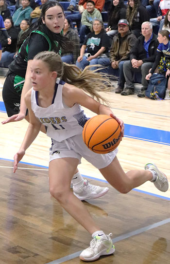 Junior Morgan Russell tallied 21 points on nine field goals plus 3-4 free throws, junior Hanna Ashby 16 on five field goals plus 6-7 free throws, and freshman Taylor Ashby 10 on four field goals plus 2-4 free throws. Senior Macy Allred and junior Page Ashby added seven apiece, junior Cheyanne Alder four, and sophomore Jailey Talley two.