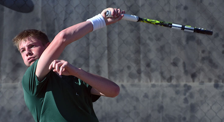 Singles No. 1 senior Jackson Paull, No. 2 junior Colt Lunt, and No. 4 junior Eli Rogers defeated senior Jaxon Yslava (7-5, 6-2), senior Skylar Sanchez (6-0, 6-4), junior Louis Reyes (6-1 twice), and senior Lenin Albarran (6-0, 6-4), respectively.
