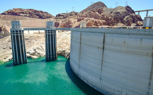 Lake Mead water levels behind the Hoover Dam in July 2022 show the effect of long-term drought. (Photo by Christopher Clark/Bureau of Reclamation)