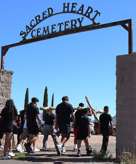 MORENCI – Several hundred area Catholics made the traditional journey to the Sacred Heart Cemetery on Good Friday, pausing to recite the stations of the cross as different bearers shouldered the wooden replica.