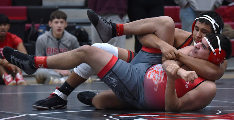 The seniors include Dean Chee (190, 8-5, 5 pins), Isaiah Cook (285, 9-2, 5 pins), Kiano Torres (144, 4-0, 2 pins), and Merrick Williams (138/144, 11-1, 10 pins); juniors Zahia Cano-Nabor (175, 2-0), Emerson Montes (150/157, 12-1, 10 pins), Jesse Strickland (157, 2-1, 2 pins), and Hector Vasquez (126, 1-0); sophomores Jeremiah Cano (120/126, 7-0, 5 pins), James Davis V (215, 9-4, 5 pins), Jase Morgan (126/132, 7-4, 5 pins), Ryder Nelson (120, 6-2, 5 pins), Joseph Rodriguez (144, 2-1, 1 pin), Anthony Sanchez (132/138, 9-3, 6 pins), Joshwa Sandoval (138/144, 2-0, 1 pin), and Rhyler Wyatt (113, 10-3, 7 pins); and freshmen Jacob Goodwin (165/175, 11-2, 8 pins), Marcus Morgan (132/144, 1-1, 1 pin), Damian Paz (144, 1-5), Joshua Roybal (285, 2-0, 1 pin), and Caden Woodall.