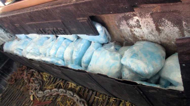On Friday, Port of Lukeville officers encountered a 34-year-old Mexican national driving a Chevy truck attempting to enter the country.  CBP officers referred him to the inspection lot and were assisted by a narcotics detection canine.  The dog alerted to a scent it is trained to detect, the subsequent search resulted in the discovery of nearly 76 pounds of methamphetamine concealed in a false truck bed wall.  The meth has an estimated street value of nearly $76,000.