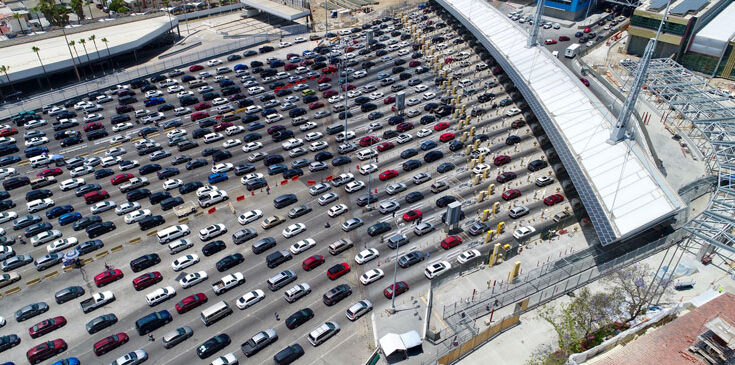 Traffic at the San Ysidro Point of Entry. U.S. Customs and Border lines to cross. Protection officers arrested a Mexican citizen who is a U.S. lawful permanent resident on Oct. 22, 2025 after officers discovered a record-breaking nearly 290 pounds of heroin, with an estimated street value of more than $13 million, concealed within his vehicle as he attempted to enter the U.S. at the San Ysidro Port of Entry.