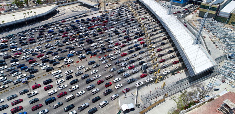 Traffic at the San Ysidro Point of Entry. U.S. Customs and Border lines to cross. Protection officers arrested a Mexican citizen who is a U.S. lawful permanent resident on Oct. 22, 2025 after officers discovered a record-breaking nearly 290 pounds of heroin, with an estimated street value of more than $13 million, concealed within his vehicle as he attempted to enter the U.S. at the San Ysidro Port of Entry.