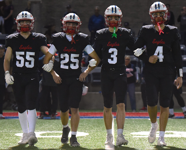 The Eagles list a 53-member roster with 14 seniors, 10 juniors, 18 sophomores, and 11 freshmen. Seniors include Jack Filby (19), Brody Flowers (0), Sean Helgeson (4), Trey Houglum (58), Joseph Kassisieh (50), Landon Larkey (77), Bennett Libby (55), Logan Liston (56), Cade McKee (66), Abraham Ortega (53), Martin Perez (18), Everett Salazar (25), Jesse Scholtes (17), and Isaiah Steffen (2); juniors Danny Beran (33), Dom Dickerson (1), Dylan Dufek (24), Garrett Guarraia (45), Caleb Murphy (8), Kyle Olafson (3), London Olsen (54), Max Pflederer (7), Isaiah Phifer (11), and Sam Watkins (64); sophomores Nathaniel Elrod (6), Michael Fox (14), Hayden Gibbons (88), Isaac Hammon (35), Brian Helgeson (13), James Liakatas (62), Carter Loop (12), Liam Martz (16), Isaac Machain (30), Harrison Mings (34), Danny Owen (68), Ethan Peterson (69), Carson Reed (9), Jayce Reeter (5), Angelo Scappaticci (15), and Jack Schrey (70); and freshmen Nixon Bair (28), Levi Begeman (26), Cooper Craigs (23), Logan Flaherty (10), Joshua Gayman (63), Bryce Horton (47), Brock Libby (87), Sully Reader (22), Hudson Spencer (71), Ben Watkins (20), and Mason Williams (31).