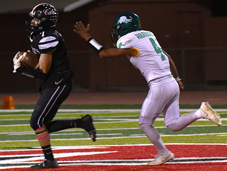 Ending up in the end zone when you have possession of the ball is the goal of every team. The host Wildcats started that way. Morenci received the opening kick, drove 50 yards in 10 plays, and crossed the goal line on 3rd-and-goal from the five. But the Wildcats only scored on four of seven first-half possessions for a 25-0 halftime advantage. Julien Aragon darted in, and Kiano Torres added the conversion kick.