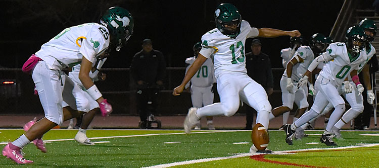 Meanwhile, Tuba City punted five times on its seven first-half possessions, twice on 4th-and-13, on 4th-and-5, on 4th-and-10, and on 4th-and-17 after gaining 60 yards; turned it over on downs, and ran out of time.