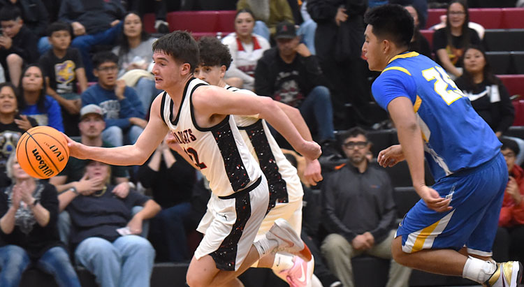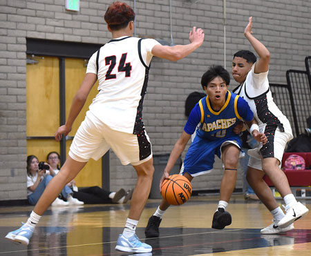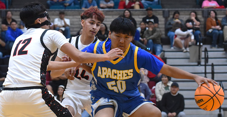 Three Apaches netted double-digit scoring. Wilson had 22 points on seven field goals (two 3-pointers) plus 6-8 free throws, Michael Oliver 15 on six field goals (one 3-pointer) plus 4-8 free throws, and Justin Olivar 14 on six field goals (two 3-pointers). Johnson added nine points, Titla seven, and Dosela two.