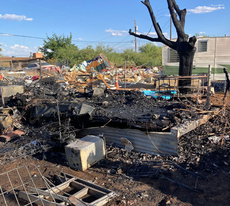 GRAHAM COUNTY — A mobile home on Cheyenne Drive in Graham County was completely destroyed by fire Monday afternoon, with investigators pointing to a downed power line as the possible cause. The residence is located just south of Highway 366 (Swift Trail) and west of the Federal Correctional Institution – Safford.