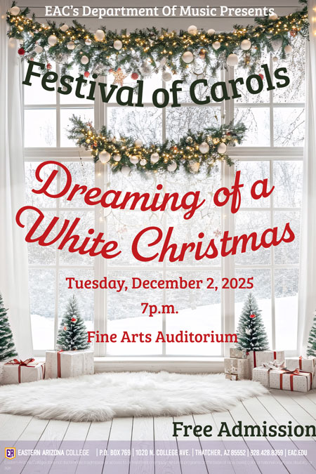 EAC’s vocal ensembles will fill the auditorium with nostalgic melodies, rich harmonies, and the familiar carols that have made this concert a long-standing favorite in the Gila Valley.
