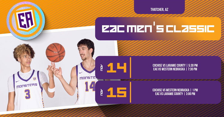 THATCHER — The Eastern Arizona College Gila Monsters men’s basketball team is gearing up for a high-octane weekend as they host the annual Eastern Arizona Men’s Classic on Nov. 14–15 at Guitteau Gymnasium. This two-day showcase promises four gritty matchups featuring a quartet of junior college powerhouses: the hometown Gila Monsters, Cochise College, Laramie County Community College, and Western Nebraska Community College.