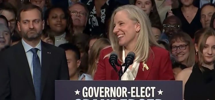 Democrat Abigail Spanberger gives a victory speech after being elected governor of Virginia.