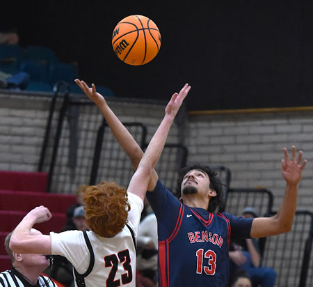 For Benson, senior Dawson Judd totaled 23 points on nine field goals (three 3-pointers) plus 2-2 free throws, Chapman 14 on six field goals (two 3-pointers), and junior Jason Santo12 on five field goals plus 2-2 free throws. Junior R.J. Montijo added two points, and both senior Kellen Deskins and sophomore Cohen Barney one each.