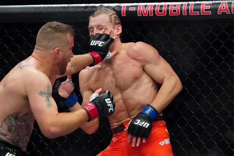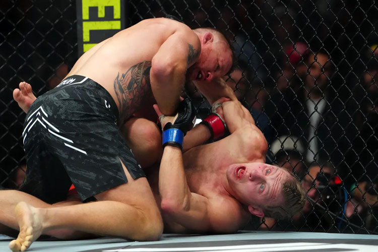 Near the end of the fight, Pimblett attempted to go to the ground twice but was thwarted. Pundits have said Gaethje is susceptible to wrestling, even though he was an NCAA All-American wrestler in college. On this night, it was Gaethje who used a front headlock from the ground around Pimblett’s neck at various points to keep control.