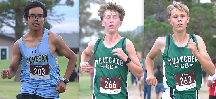 Individually, Alchesay sophomore Yonah Beatty set the pace with a 16:39.78 clocking to top a field of 66. Thatcher freshman Brysen Kartchner was second (18:02.93), Thatcher sophomore Weston Dement third (18:08.92), Nogales freshman Nicholas Arana fourth (18:14.40 PR), Benson junior Jace Myatt was fifth (18:15.17), Alchesay sophomore Kyree Cheney sixth (18:28.77 SR), Safford senior Noah Gonzales seventh (18:33.31 PR), Benson freshman Brody Upshaw eighth (18:38.54), Nogales junior Javier Nunez ninth (18:40.78), and Alchesay junior Rashaad Butterfield 10th (18:58.91).