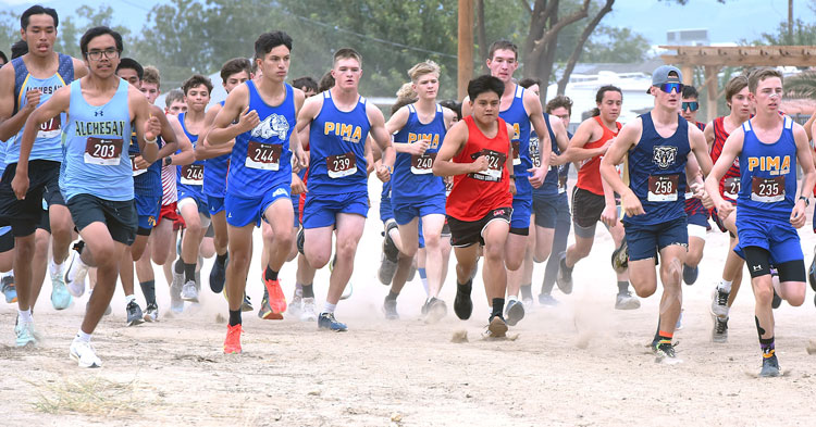 Pima was sixth with Charles Richardson at 18th, senior Keaton Bryce 22nd (19:44.57 PR), junior Joel Mattice 42nd (21:11.66), freshman Tell Richardson 44th (21:39.73), and sophomore Alakai Nieves 48th (22:24.71). The sixth and seventh Roughriders, juniors Cartsen Cluff and Adam Bryce, were 56th (23:23.63) and 58th (23:48.75 PR), respectively.