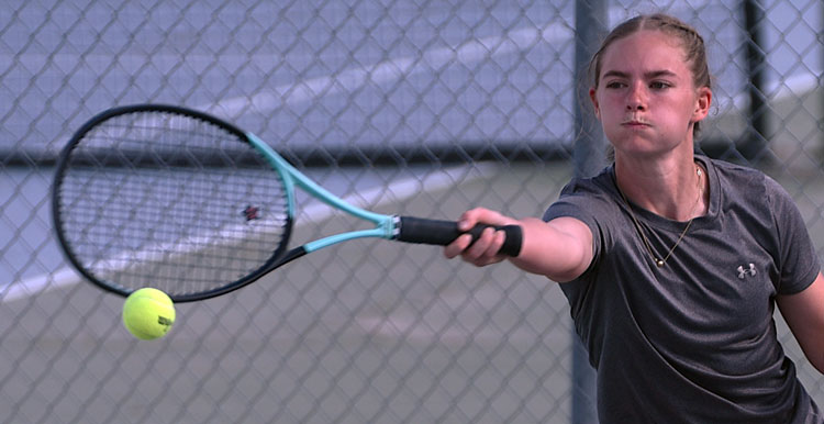 In doubles, it was No. 2 sophomore Paisley England – junior Adalie Lewis 8-2 over Mudge – Bras.