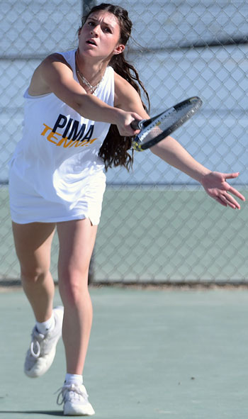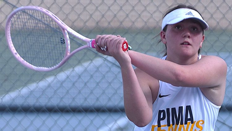 Pima (1-1) is 5-7 in singles and 5-1 in doubles. Top seed senior Merrill Decrow is 1-1, No. 2 senior Miley Preston 0-2, No. 3 freshman Audrey Bryce 0-2, No. 4 junior Perry Bingham 1-1, No. 5 junior Paizli Payne 1-1, No. 6 freshman Brielle Allen 1-0, and freshman Tynzli Hatch 1-0.