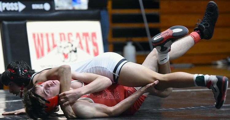 Also placing first were Pima freshman Aiden Espinoza (113, 3-0, 2 pins), senior Kodi Ferguson (150, 3-0, 3 pins), senior Kutter Beals (157, 3-0, 3 pins), and senior Brock Haws (215, 2-0, 2 pins); Thatcher seniors Tristun Brown (165, 2-0, 2 pins) and Madden MaGill (175, 2-0, 2 pins), Benson sophomore Kolttin Deskins (126, 3-0, 2 pins), Round Valley junior Mason Orona (132, 3-0, 1 pin), and Willcox senior Travis Larson (285, 2-0, 1 pin).