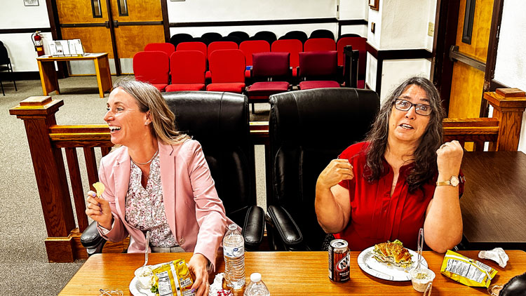 Jon Johnson Photo/Gila Herald: Attorneys Rebecca Johnson, left, and Josi Lopez share a laugh.