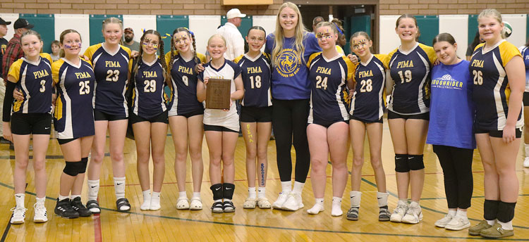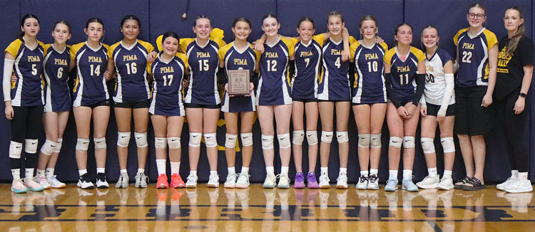 PIMA – The top two 8th Grade seeded teams met for the Eastern Arizona Junior High Association’s volleyball tourney championship match in Pima on Oct. 16. Top-seeded Pima won the first set and second-seeded Morenci the next two for the title.