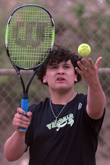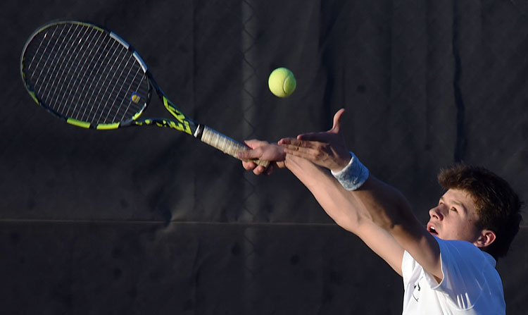 Singles top seed senior David Gonzalez, No. 2 junior Adam Olsen, No. 3 senior Brandon Lloyd, No. 4 junior Cade Haggart, No. 5 junior Josh Filangeri, and No. 6 sophomore Cyrus Filangeri defeated sophomore Lucas Lackner (6-0 twice), junior John Archuleta (6-0 twice), sophomore Trae Gaines (6-1 twice), freshman Gunnar Crockett (6-0 twice), sophomore Nathan Tarnutzer (6-3, 6-4), and sophomore Jackson Smith (6-0, 6-1), respectively.