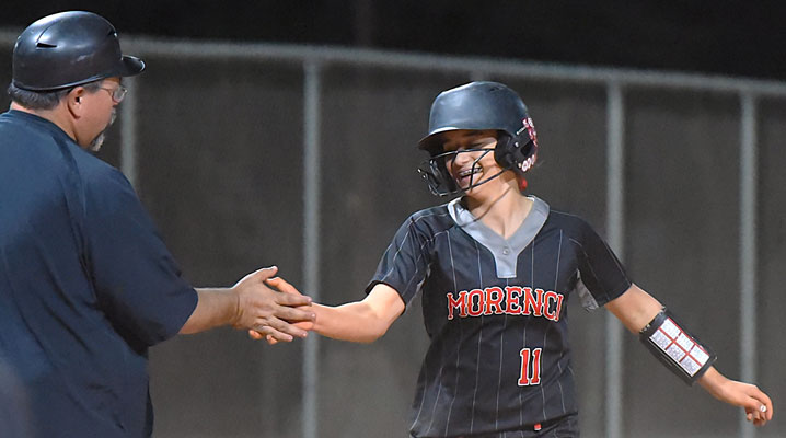 Morenci has 16-game averages of .418 (168-402) batting with 135 of 153 runs batted in, .811 (171-86-60) fielding with 16 double plays, and a 4.87 earned run average through 82 innings with 60 strikeouts, 39 walks, and 13 grazed batters.