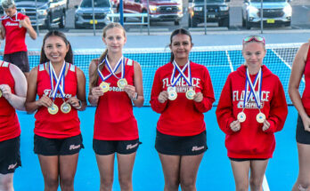 Individual singles gold medalists were Florence No. 2 senior Tatiana McKissack, No. 3 sophomore Elizabeth Gurule, No. 4 junior Sophia Billingsley, and No. 5 senior Erin McCabe along with Miami No. 1 senior Jeffery Askew and No. 6 sophomore Jeriah Palmer.