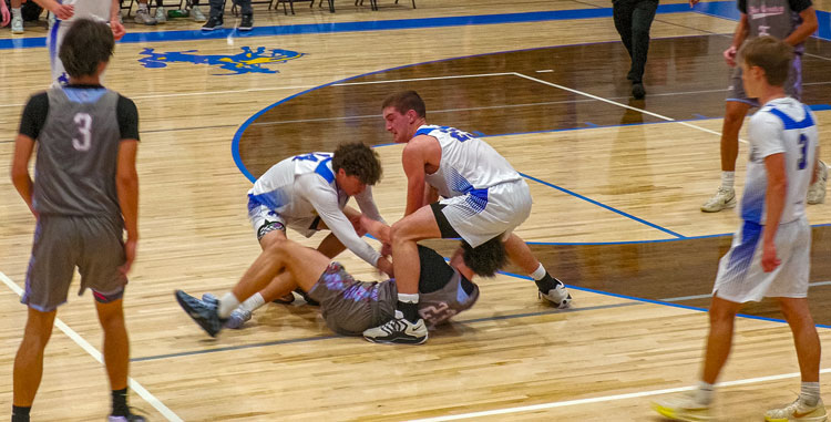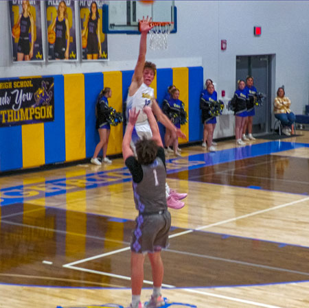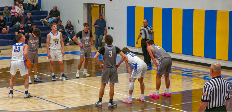 After Brendan Skiba (5 points) got it going on with a post move and then by hitting a long baseline jumper, a mini-game went on between Parker White (11 points) and Stratton McRae. White started by hitting a 3, and McRae immediately followed that up with a drive and score. White then came back with a pull-up jumper with McRae all in his face and got it to go.