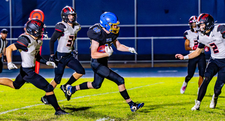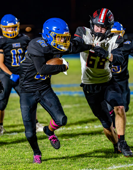 Pima would score two plays later on Joe Palmer’s second rushing touchdown of the night. Palmer took the handoff 17 yards to pay dirt, and Grimes spun in for the 2-point conversion to make it 21-7 with 10:19 left in the third.