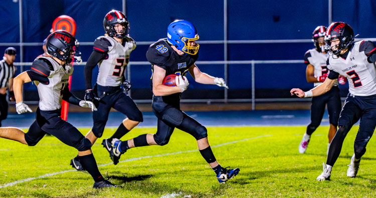 Pima would score two plays later on Joe Palmer’s second rushing touchdown of the night. Palmer took the handoff 17 yards to pay dirt, and Grimes spun in for the 2-point conversion to make it 21-7 with 10:19 left in the third.