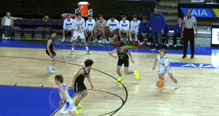 A late turnover led to Fountain Hills’ second bucket of the game, but Tanner Smith found Charlie Richardson down low for an easy bucket to make it 10-4 at the end of the first quarter.
