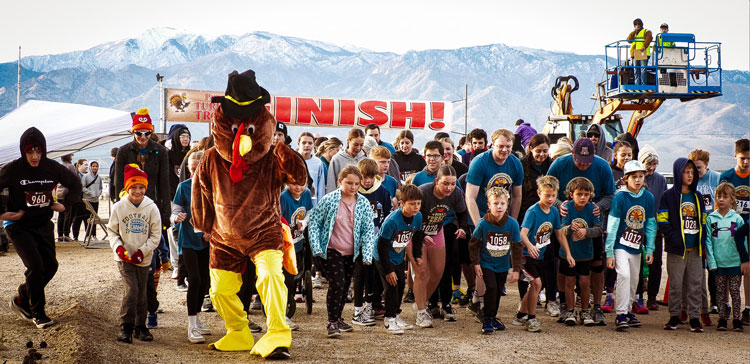 Competitive spirits were high, with $50 cash prizes on the line for the overall male and female winners, and a coveted turkey trophy awarded to the family boasting the most registered participants.