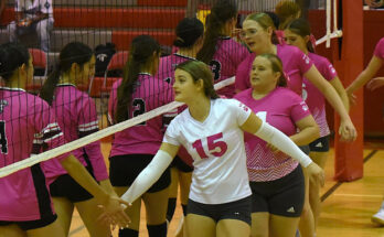 seniors Jessa Maldonado (1), Brooklyn Penrose (13), Emma Rivera (23), Briella Schuller (21), Ed’Jerrica Spencer (2), and Rachel Thursby (22); juniors Arabella Alvarez (24), Lily Garcia (14), and Espi Lepley (15); and freshmen Damaris Alvarez (11) and Breia Keift (5).