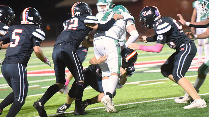 Senior Aundre McCauley intercepted a 1st-and-15 Vandals’ pass and junior Joel Baca weaved 20 yards into the end zone on 2nd-and-10. The conversion kick was wide left, but Morenci covered 30 yards in three plays using 1:22 and led 38-0 with 5:33 left in the half.