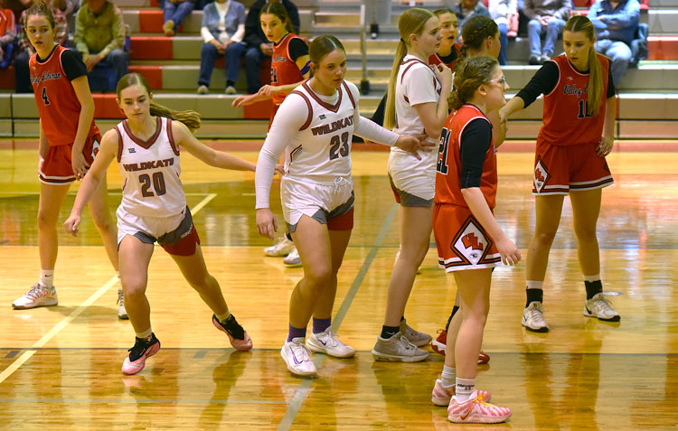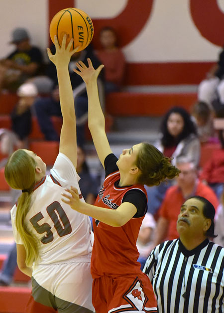 Juniors Sofia Harris and Paisley Patton netted 11 points apiece, on five field goals (one 3-pointer) plus 0-2 free throws and on five field goals plus 1-2 free throws, respectively. Junior Heidi Miller added nine points, freshman Dusty Rodriguez six, junior Lily Ford and sophomore Haley Bigler five apiece, freshman Emma Harris four, and freshman Josie Wright one.