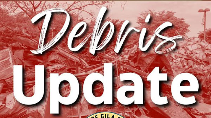GILA COUNTY – From now through Saturday, fee-waived flood debris drop off is available at the landfill, 5891 Hope Lane (off Russell Road, south of U.S. Highway 60), in Globe, 𝐟𝐫𝐨𝐦 𝟔 𝐚.𝐦. – 𝟑 𝐩.𝐦.