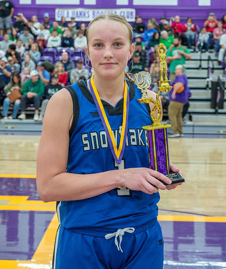 Photo By Trampus Colby/Colby Photography: Snowflake’s Ryah Denhalter finished with 17 points and took home the tournament MVP trophy.