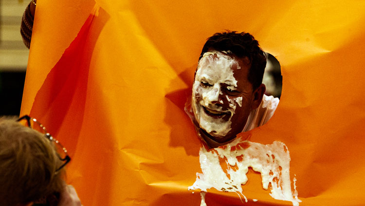 “I told them if the lower classmen won, I’d take a pie,” Conrad laughed afterward, wiping whipped cream from his face. “They didn’t just win – they crushed it.”