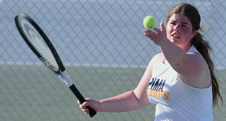 Pima (2-2) is 10-14 in singles and 8-4 in doubles. Top seed senior Merrill Decrow is 1-3, No. 2 senior Miley Preston 0-4, No. 3 freshman Audrey Bryce 2-2, No. 4 junior Perry Bingham 2-2, No. 5 freshman Brielle Allen 2-1, No. 6 junior Paizli Payne 2-2, and freshman Tynzli Hatch 1-0.