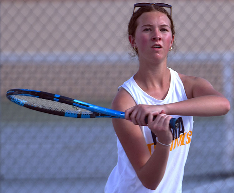 Singles No. 3 sophomore Carlee Van Buskirk, No. 4 senior Evelyn Parker, No. 5 junior Aaliyah Ortiz, and No. 6 junior Azucena Medrano over McKenzie Jones (1-6, 6-1, 10-5), Bailey Jones (7-3, 6-2), Donaldson (6-0, 6-4), and junior Elise Jarvis (6-1, 6-0), respectively.