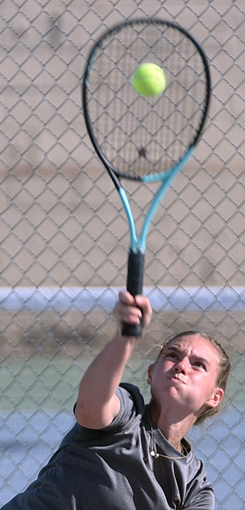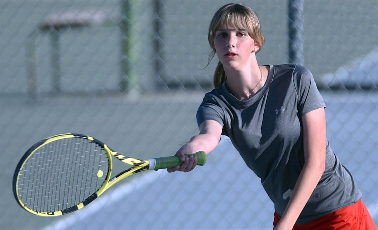 Singles top seed senior Sophie Haynie, No. 2 junior Sarah Sampson, No. 4 senior Katie Bastian, No. 5 junior Jaiden Wakefield, and No. 6 senior Savanna Kartchner defeated junior Jeannie McCallum (6-2, 6-0), sophomore Mally McCallum (6-3, 7-6), freshman Lyla Kamel (6-1, 6-4), sophomore Sophia Pena (6-2, 6-4), and senior Brooklyn Johnson (6-2 twice).