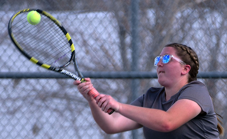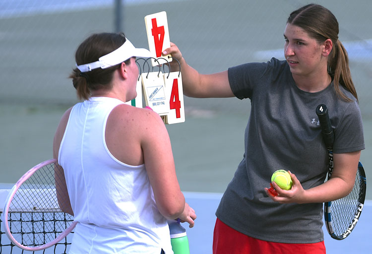Singles No. 3 freshman Audrey Bryce, No. 4 junior Perry Bingham, No. 5 freshman Brielle Allen, and No. 6 junior Paizli Payne defeated senior Emily Evans (6-1 twice), junior McKenzie Jones (4-6, 6-4, 10-3), freshman Bailey Jones (6-4, 6-3), and junior Roxy Donaldson (6-4, 6-0), respectively.